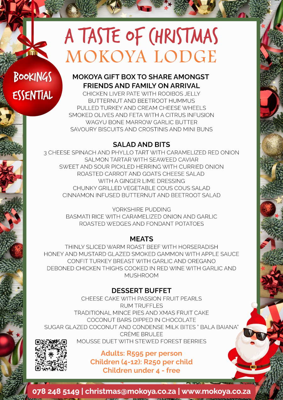 Mokoya Lodge and Sweet Thyme Restaurant offers delectable cuisine, prepared by our internationally trained chef, Raymond Massey and staff. Give yourself a treat and enjoy Christmas Day lunch in the country. Bookings are essential.