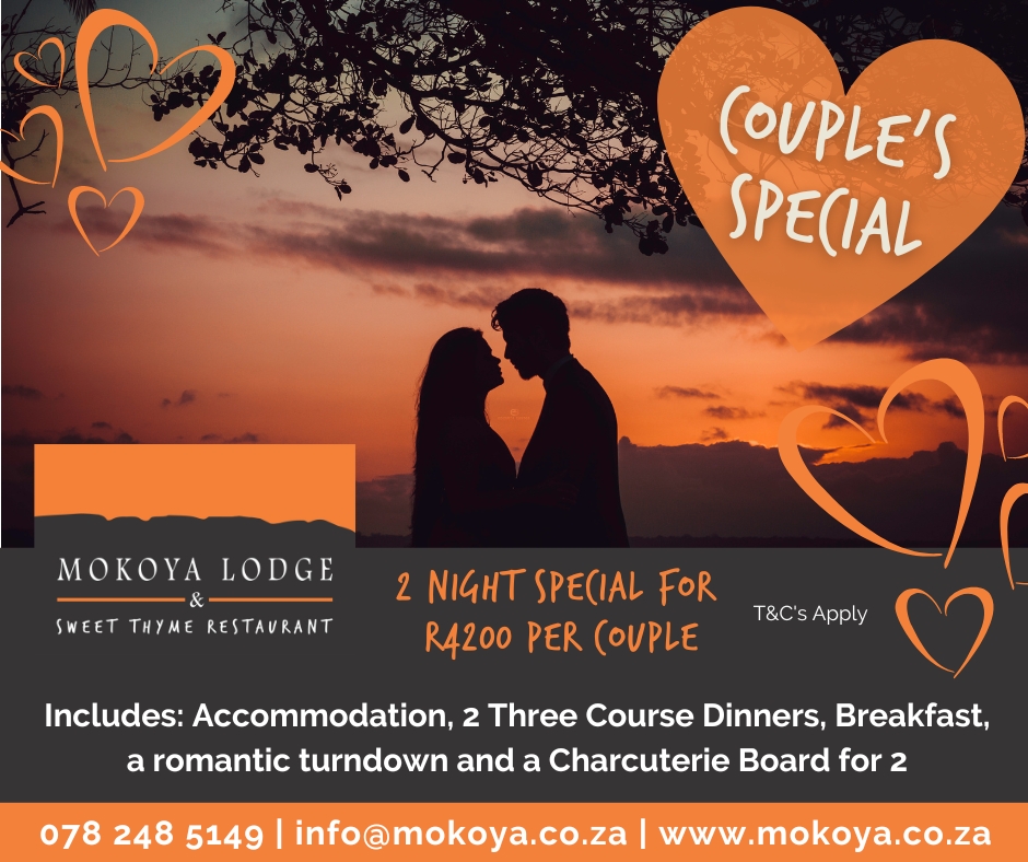 Love is in the air at Mokoya Lodge in the Magaliesburg. Our two-night special for couples includes: